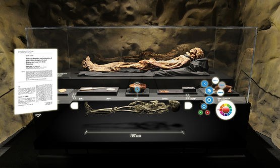 Das Projekt war ein interdisziplinäres Projekt. Ich habe den Kurs von Scientific Design ausgewählt. Das war eine Kooperation mit IEM(Institut für Evolutionäre Medizin) der Universität Zürich. Die Aufgabe ist die Visualisierung von Mumienforschung.